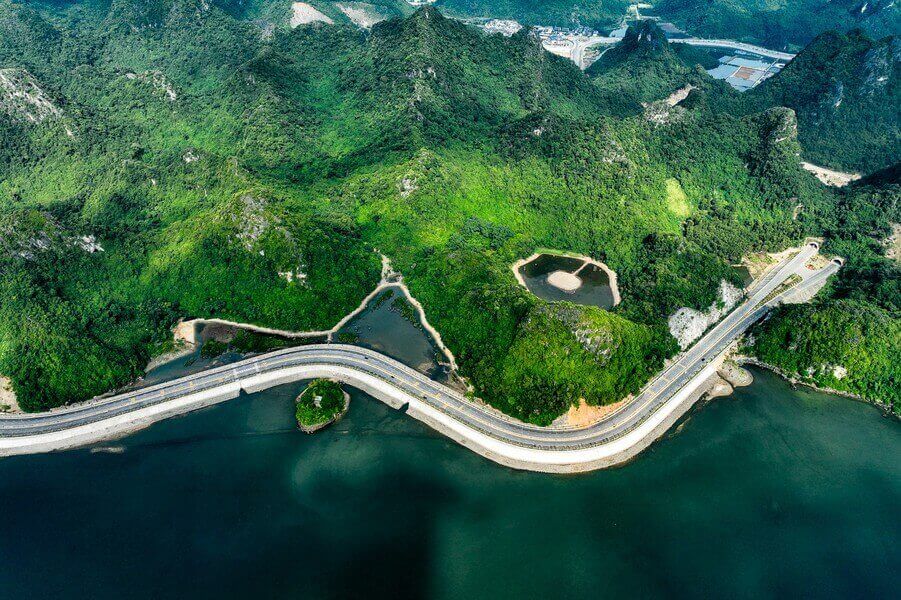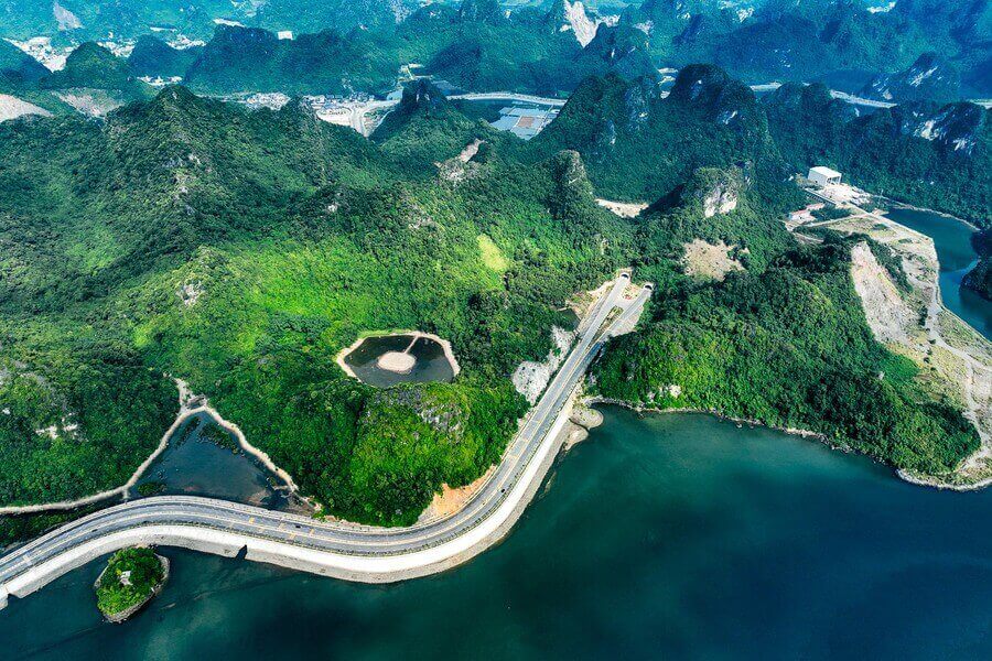 Tuyến đường bao biển trị giá 2.290 tỷ đồng uốn lượn xung quanh chân những dãy núi ở Vịnh Bái Tử Long