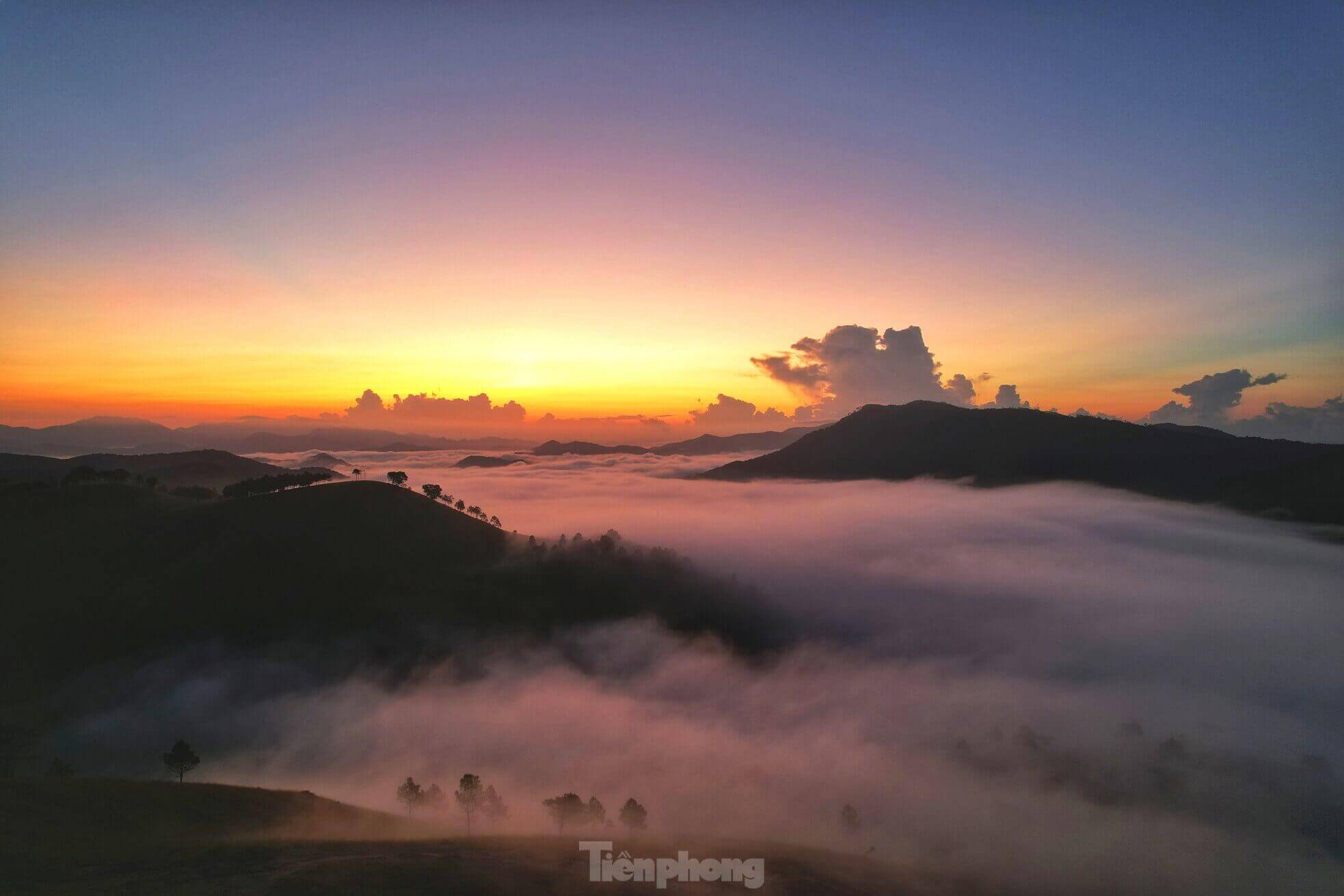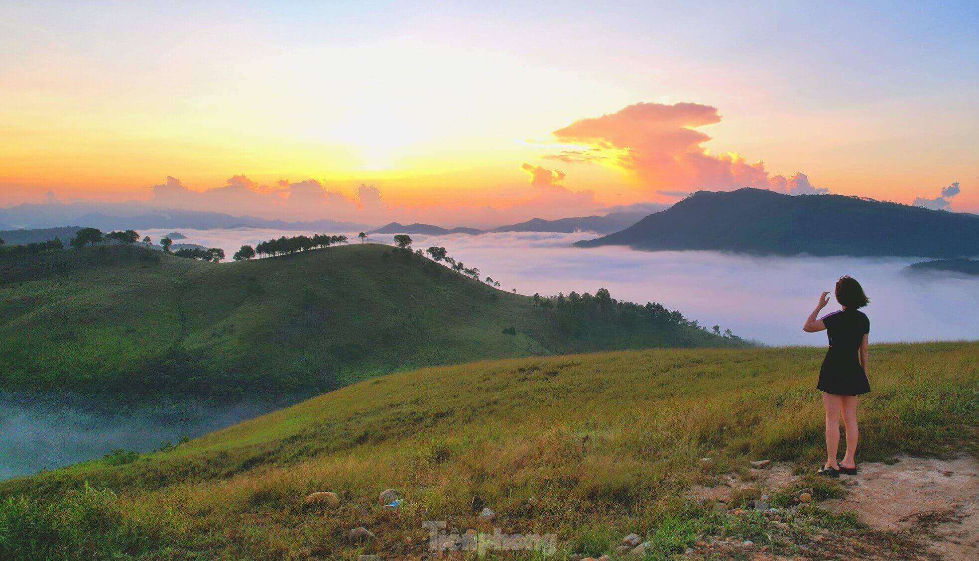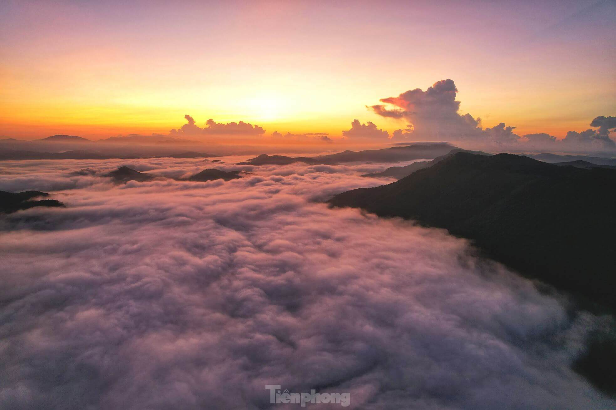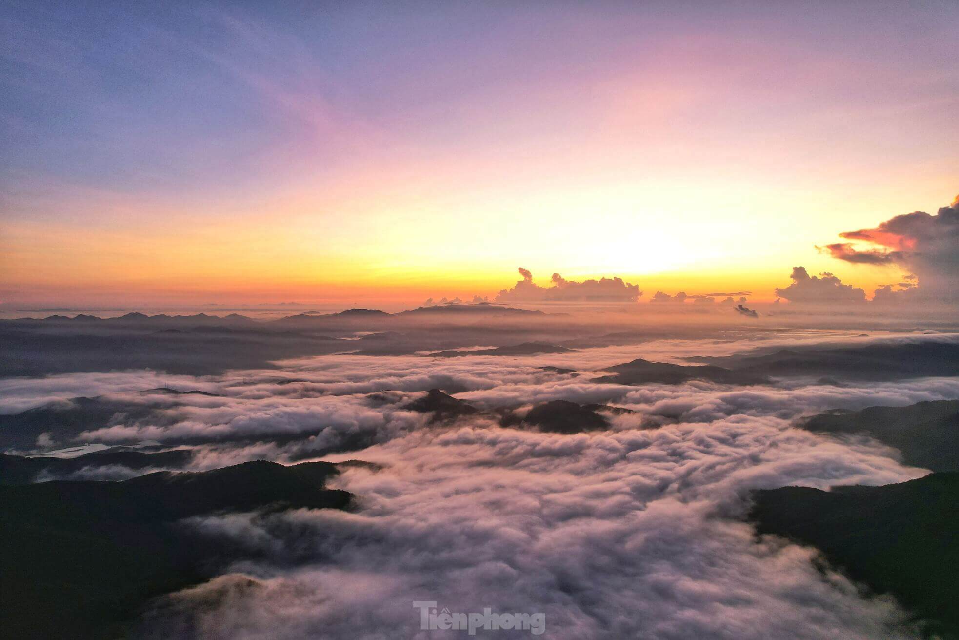 Đứng trên đỉnh núi vào thời khắc hừng đông,trước mặt là cả một biển mây vô cùng kỳ vỹ.