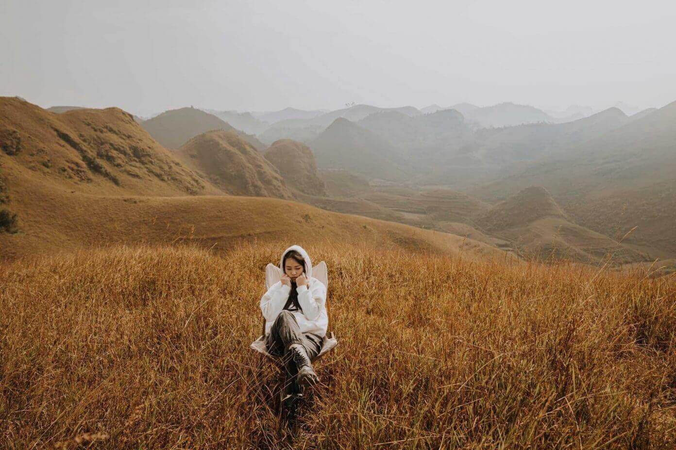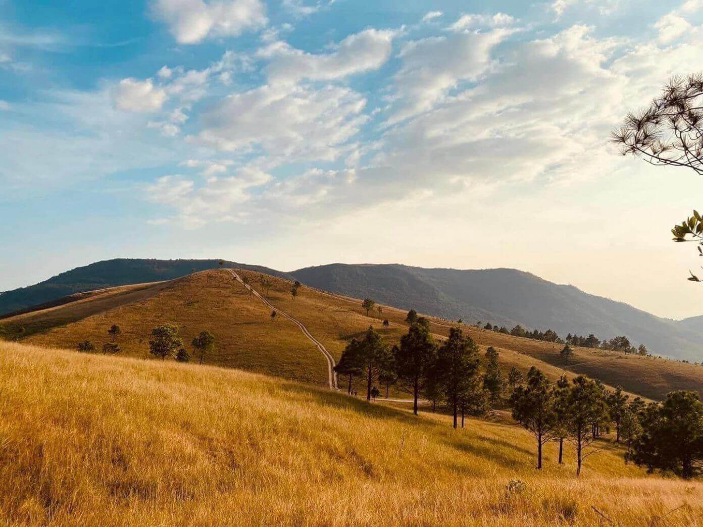 Đứng trên đồi,ngắm thảm cỏ trải dài,hòa mình vào đất trời bao la là trải nghiệm thú vị với du khách khi đặt chân đến đỉnh Phượng Hoàng.