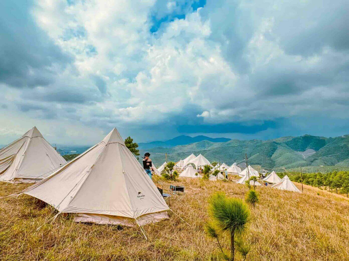 Khung cảnh hoang sơ,thanh bình khiến đỉnh Phượng Hoàng trở thành nơi lý tưởng để cắm trại,dành một đêm ngắm sao trời và thức dậy đón bình minh từ trong những chiếc lều còn đọng sương.