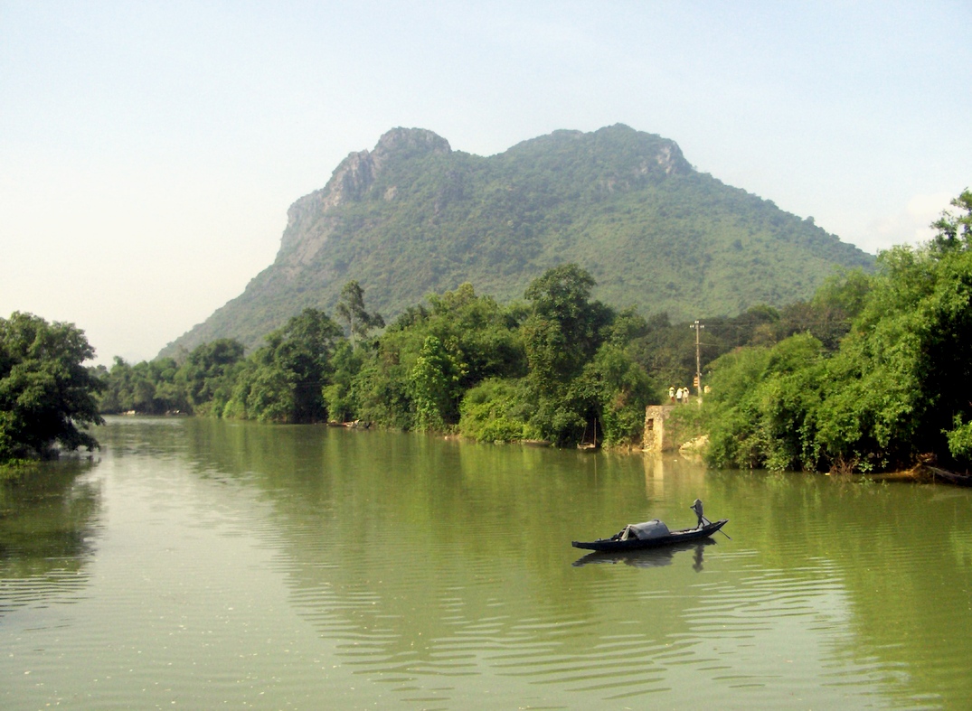 Nét đẹp như tranh của ngọn núi Thần Đinh nhìn từ dòng sông Đại Giang.