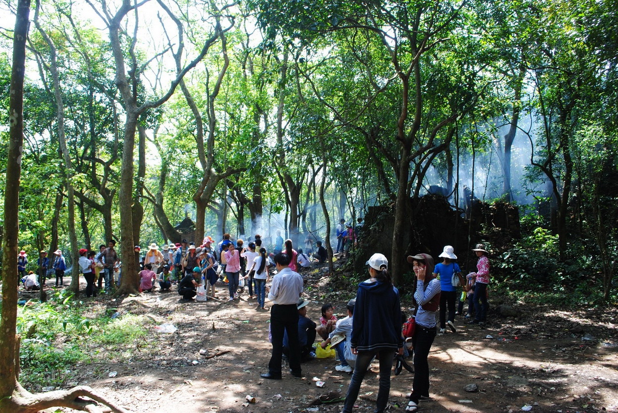 Dòng người nối đuôi nhau chinh phục cung đường mòn dẫn lên chùa Non.