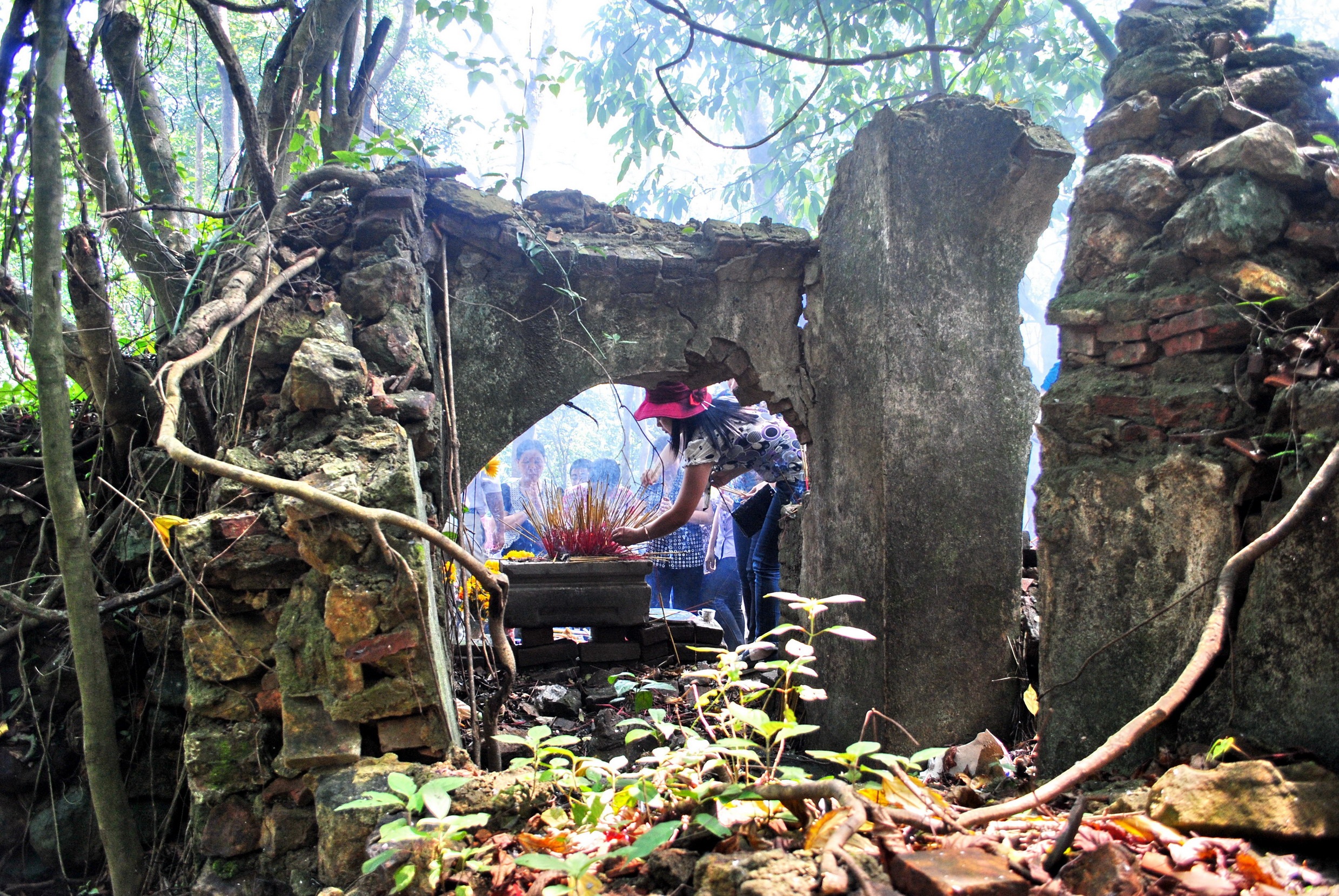 Trên đỉnh Thần Đinh có một khu đất bằng phẳng,rộng chừng 400m2,có rừng cây lớn,chính là nơi người xưa đã chọn để xây cất khu chùa Non. Qua bao năm tháng nắng mưa,trên núi vẫn còn lại nhiều di tích của ngôi chùa cổ. Chùa xưa có tám gian,bây giờ chỉ còn lại những bức tường đá,những ô cửa và bệ thờ đầy rêu phong. Trên khoảng đất bằng phẳng đó,hiện vẫn còn nguyên vẹn mấy cái miếu nhỏ,ẩn hiện dưới tán cây râm mát,bên những gốc cây cổ thụ. Ngày có nhiều du khách lên núi,khung cảnh miếu,chùa hoang tàn ẩn hiện trong khói hương bay la đà trông thật huyền ảo.
