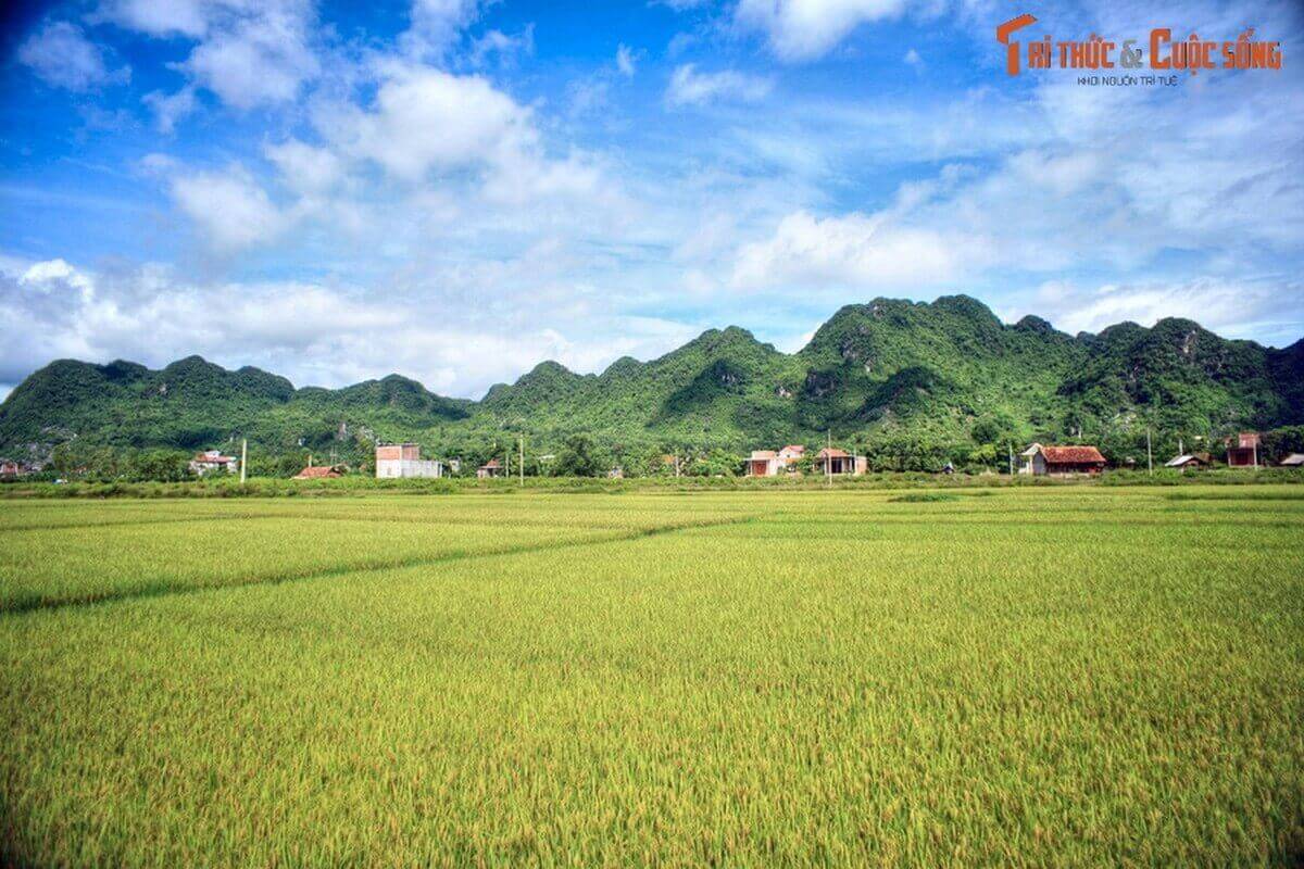 Ruộng đồng và xóm làng được bao quanh bởi những dãy núi đá vôi trùng điệp ở khu vực Phong Nha - Kẻ Bàng.