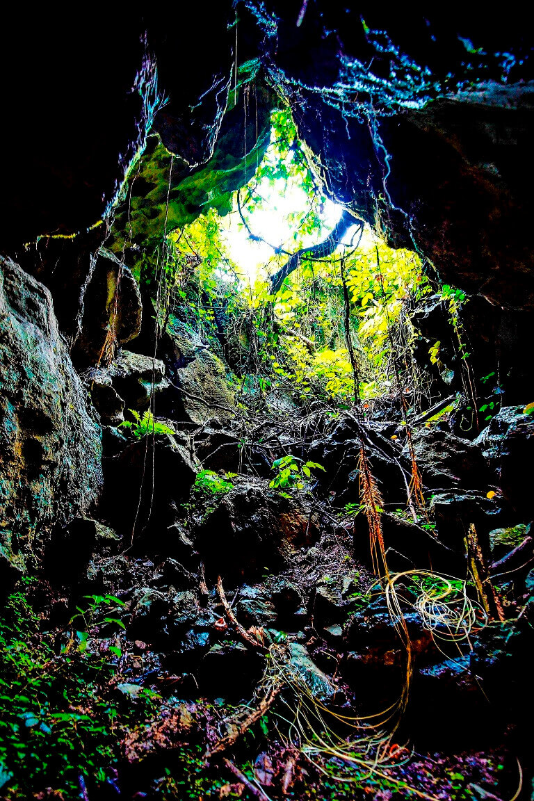 Cửa hang Chà Lòi hẹp nhưng bên trong lòng hang mênh mông và mát lạnh