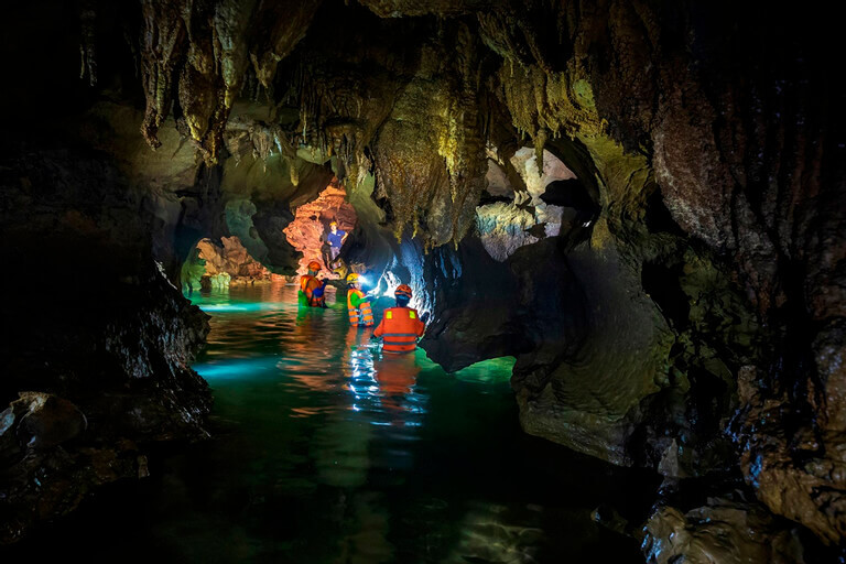 Những hồ nước trong hang không quá sâu nhưng đủ để thử thách du khách.