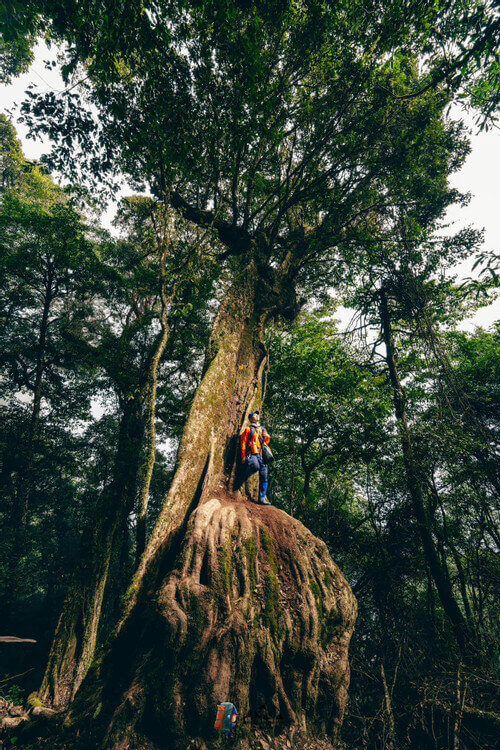 Trong rừng có nhiều cây cổ thụ kích thước “khủng”,hình dáng kỳ lạ và phủ rêu quanh năm (Ảnh: Trọng Annh)