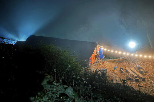 Lán nghỉ nằm ẩn mình giữa rừng già,được dựng lên làm chỗ trú chân cho du khách với sức chứa khoảng 40 người. Nghỉ tại lán,du khách được cung cấp những vật dụng cơ bản như gối,chăn,nước uống và phục vụ bữa ăn bản địa với nhiều món ngon.