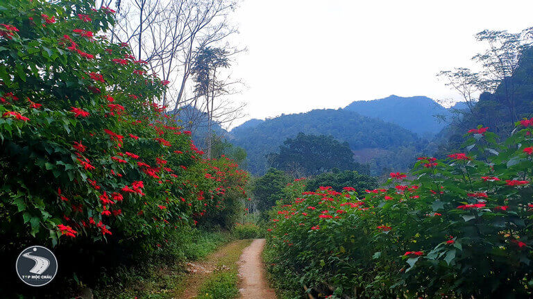 Nếu đi dọc tuyến Quốc lộ 6 đoạn từ xã Loóng Luông của huyện Vân Hồ đến thị trấn Nông trường của huyện Mộc Châu,du khách bắt gặp hai bên đường những thảm hoa tam giác mạch,hoa xuyến chi,hoa cải trắng muốt thấp thoáng dưới những sườn đồi. Hoặc lối vào bản Thuông Cuông,bản Pa Phác,du khách có thể thả bước trong theo những lối mòn đường đất,trước mặt là những luống cải trải dài hút tầm mắt.
