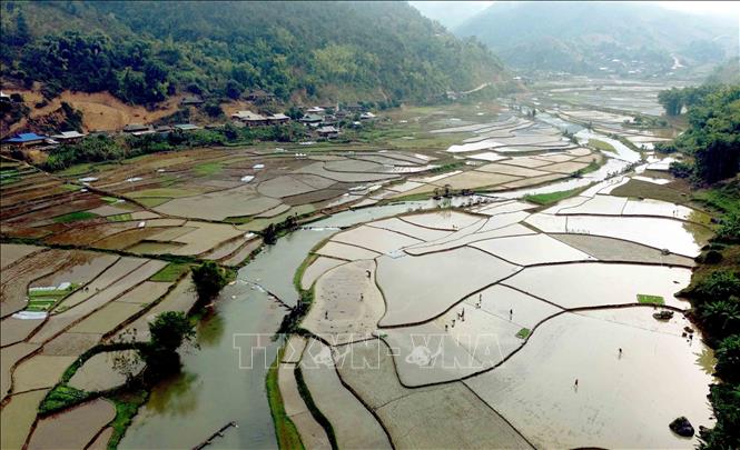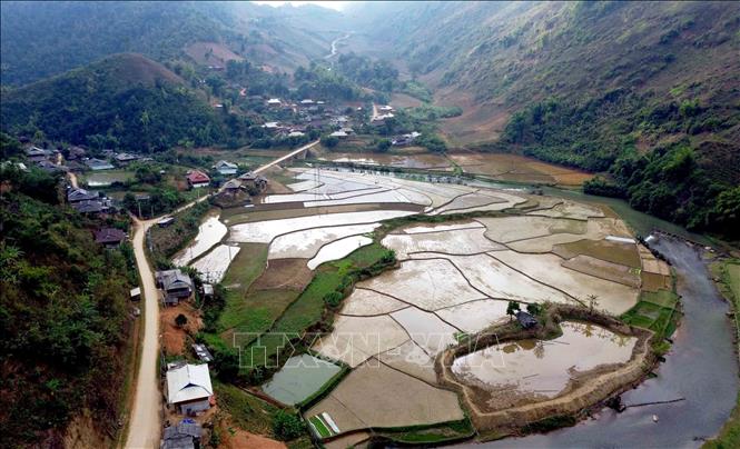 Những thửa ruộng tại bản É Tòng (Thuận Châu,Sơn La) mùa nước đổ.