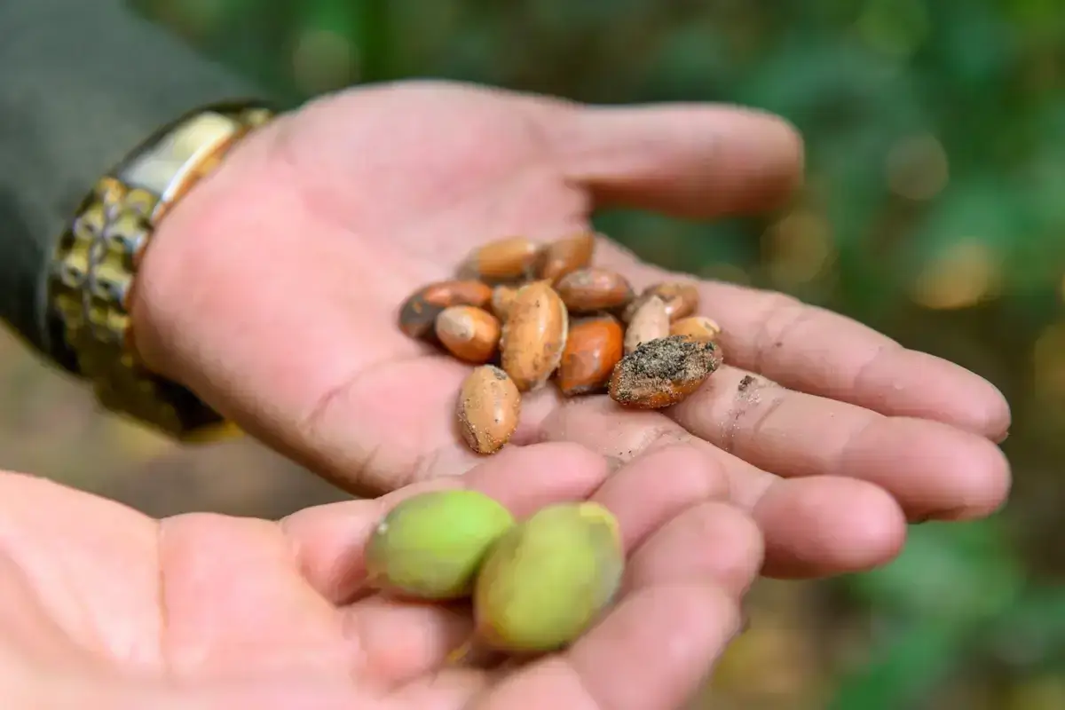 Người dân sống quanh rừng sến Tam Quy có thể vào rừng nhặt quả lấy nhân ép dầu ăn thay mỡ động vật khi được kiểm lâm cho phép.