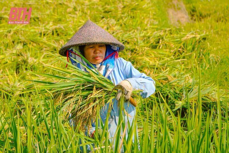 Hiện tại trên các thửa ruộng bậc thang tại các xã Thành Lâm,xã Thành Sơn (Bá Thước),đâu đâu cũng bắt gặp những người dân địa phương đang thu hoạch lúa.
