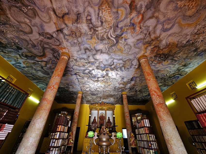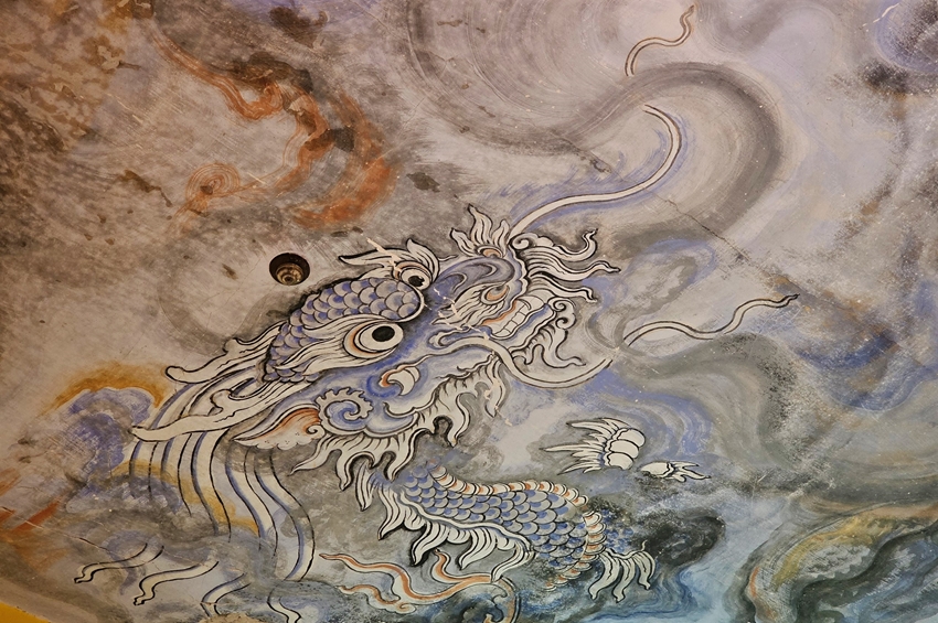Bức tranh “Long vân khế hội” trên trần chánh điện chùa Diệu Đế