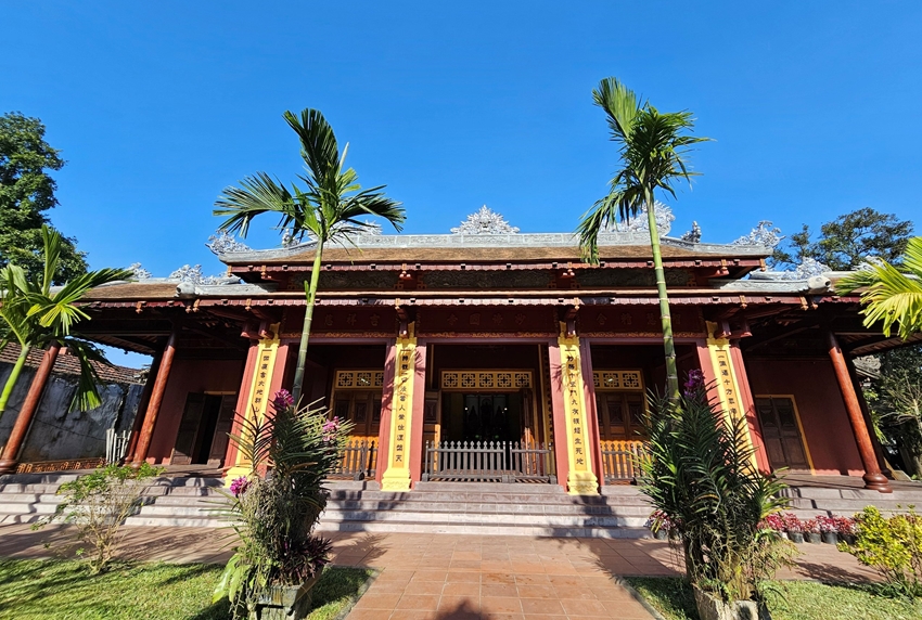 Chánh điện cũ chùa Diệu Đế sau khi được dịch chuyển lùi phía sau đã được tu bổ,gia cố