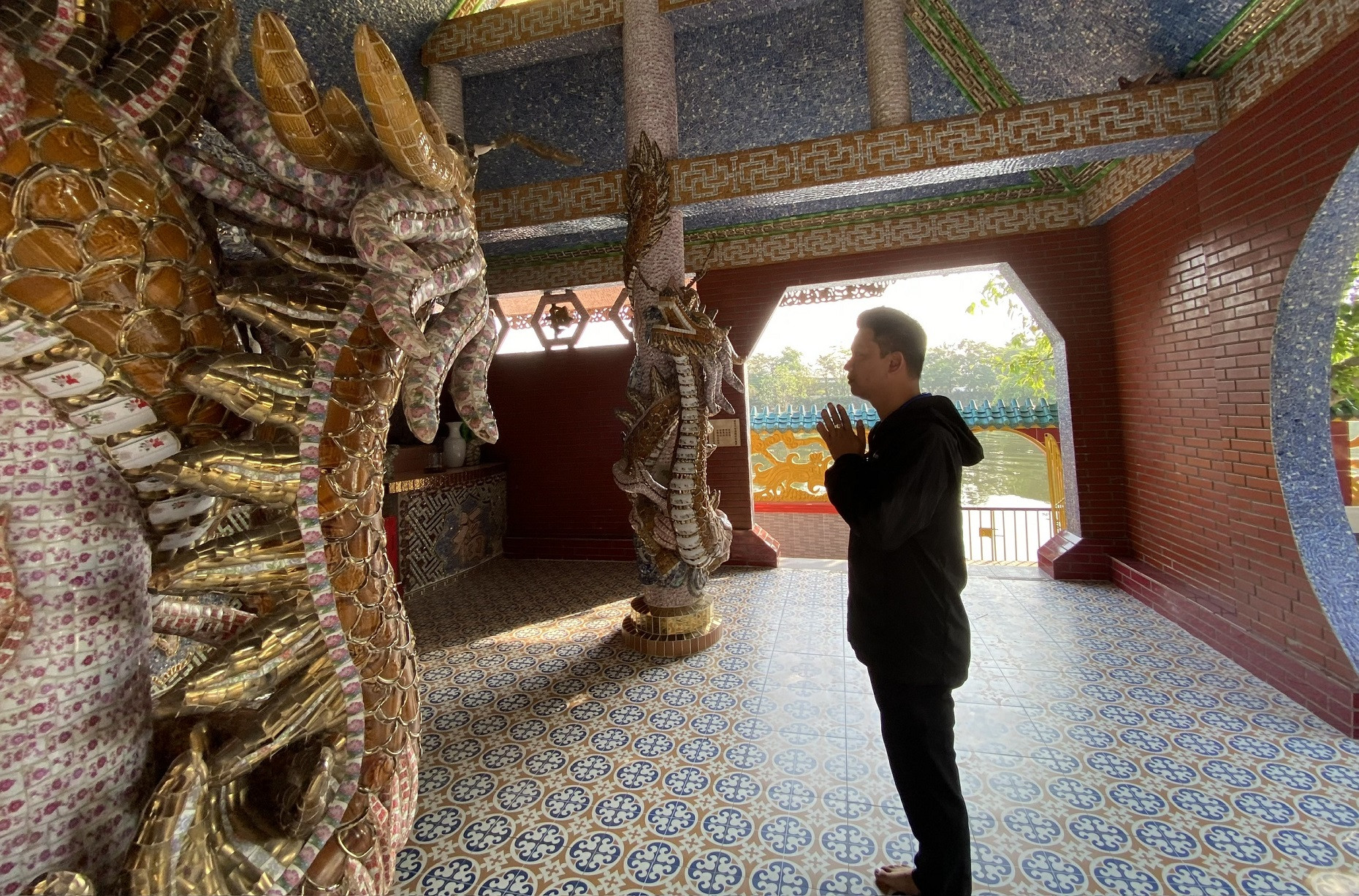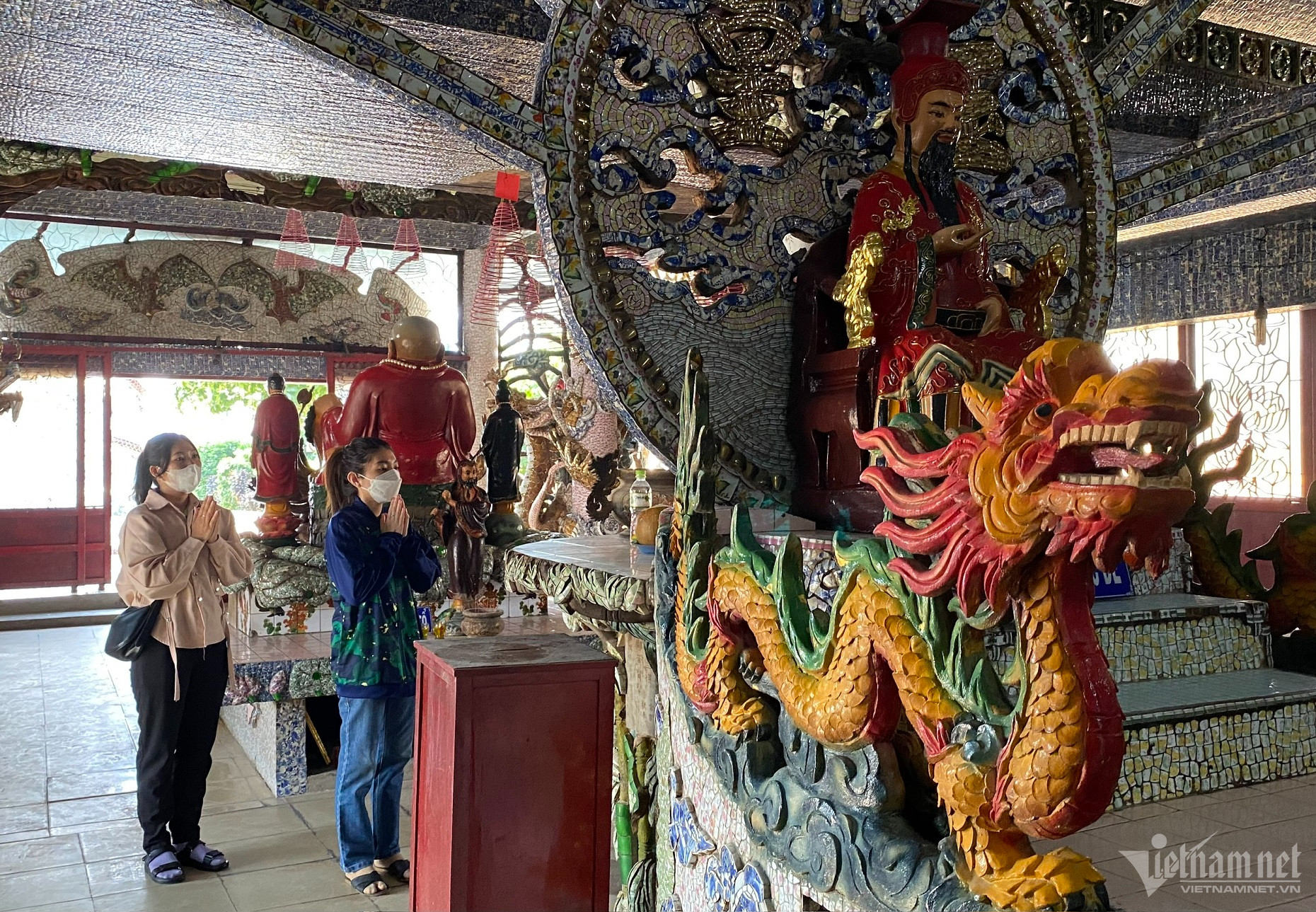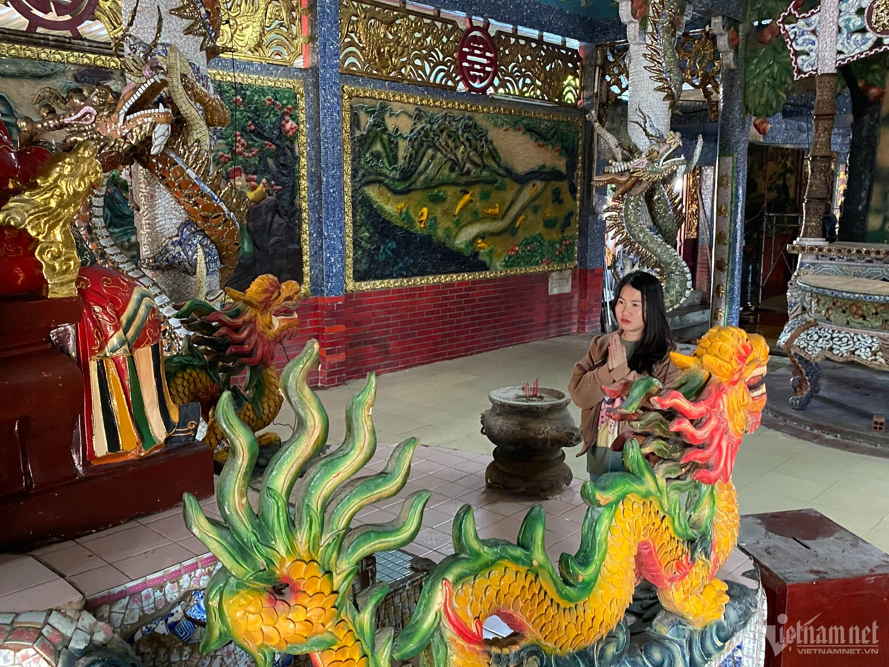 Hơn 100 con rồng lớn nhỏ được trang trí tinh xảo,uốn lượn bên trong ngôi miếu thiêng giữa sông ở TP.HCM thu hút rất đông người dân đến tham quan,chiêm bái.