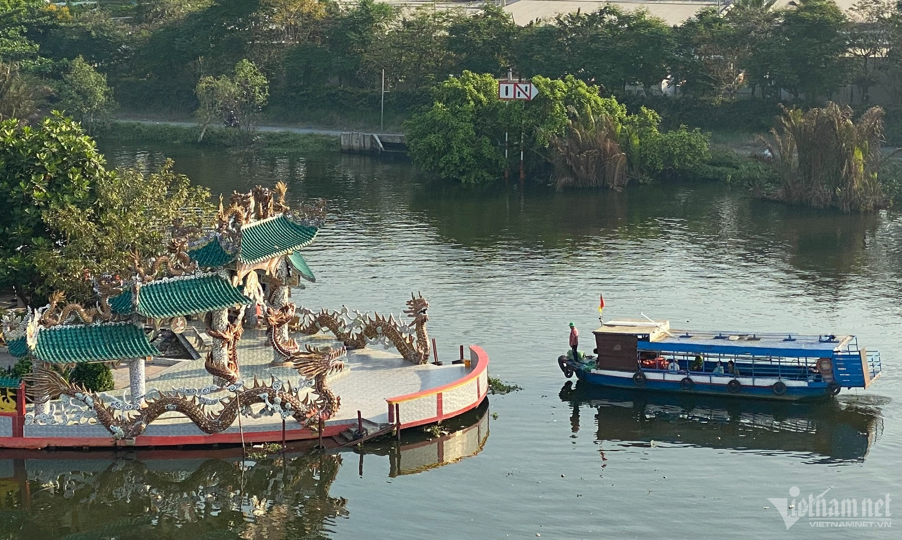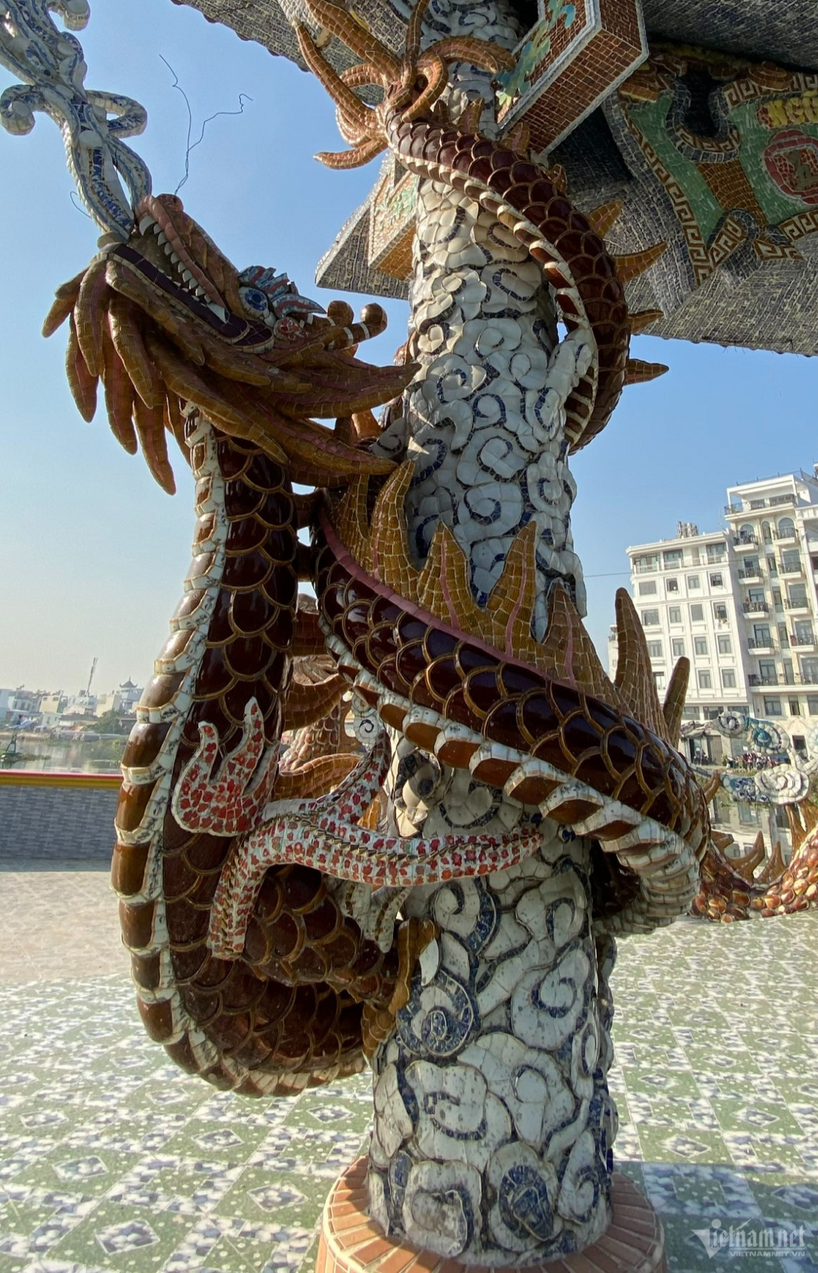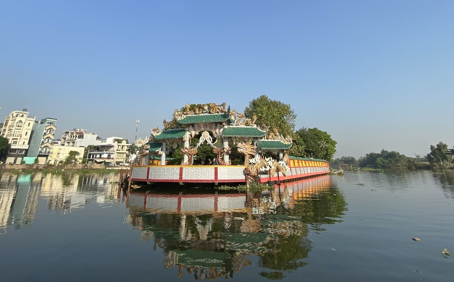 Hơn 100 con rồng lớn nhỏ được trang trí tinh xảo,uốn lượn bên trong ngôi miếu thiêng giữa sông ở TP.HCM thu hút rất đông người dân đến tham quan,chiêm bái.