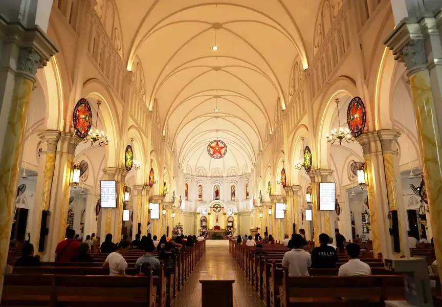 Nhà thờ Chợ Quán tại Quận 5 được coi là thánh đường cổ nhất Thành phố Hồ Chí Minh với lối kiến trúc Gothic đã 300 năm tuổi. Mặt chính diện nhà thờ được thiết kế tinh xảo với các mái vòm nhọn kết nối liên tục. Mặt bên nhà thờ là dãy cửa sổ vòm,gờ chỉ chạm trổ theo lối cổ điển. Bên trong thánh đường rộng,sơn màu vàng nhạt với các mái vòm cong,những cột đá thẳng tắp. Nhà thờ Chợ Quán hiện là điểm đến hấp dẫn,thu hút khách tham quan.