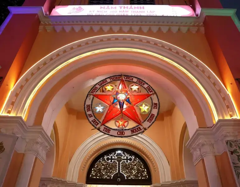 Kiến trúc vòm ngay cửa ra vào Nhà thờ Chợ Quán mang phong cách Gothic.