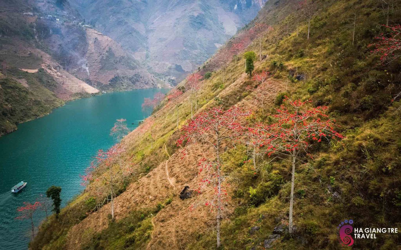 Ngoài ra,ven sông Nho Quế,từ bản Tà Làng đến Tràng Hương về với Khau Vai… cũng có những cây gạo nở hoa. Ảnh: Hà Giang Trẻ
