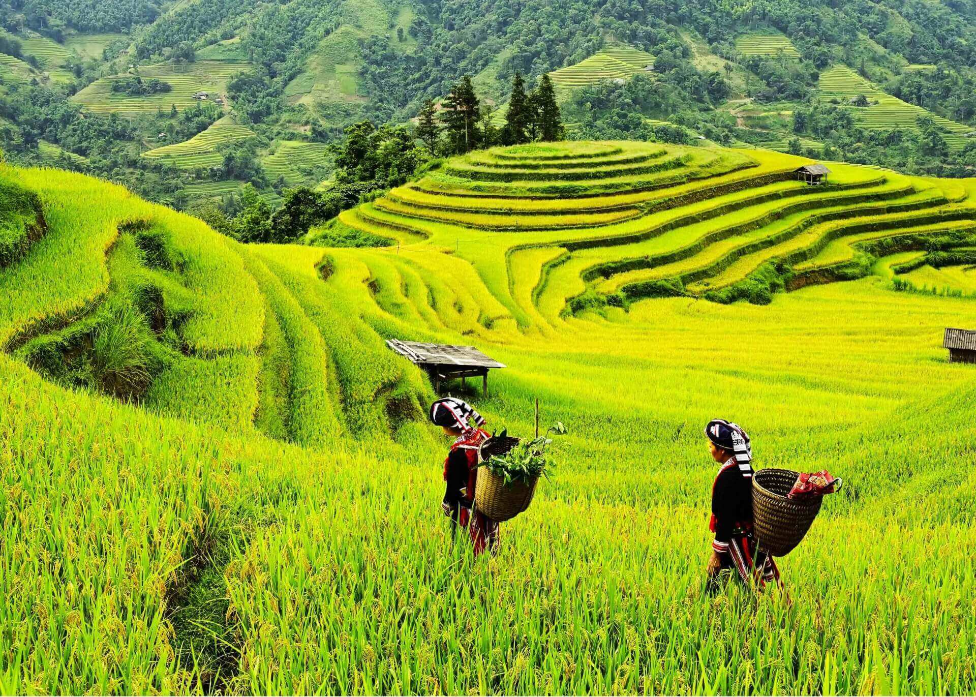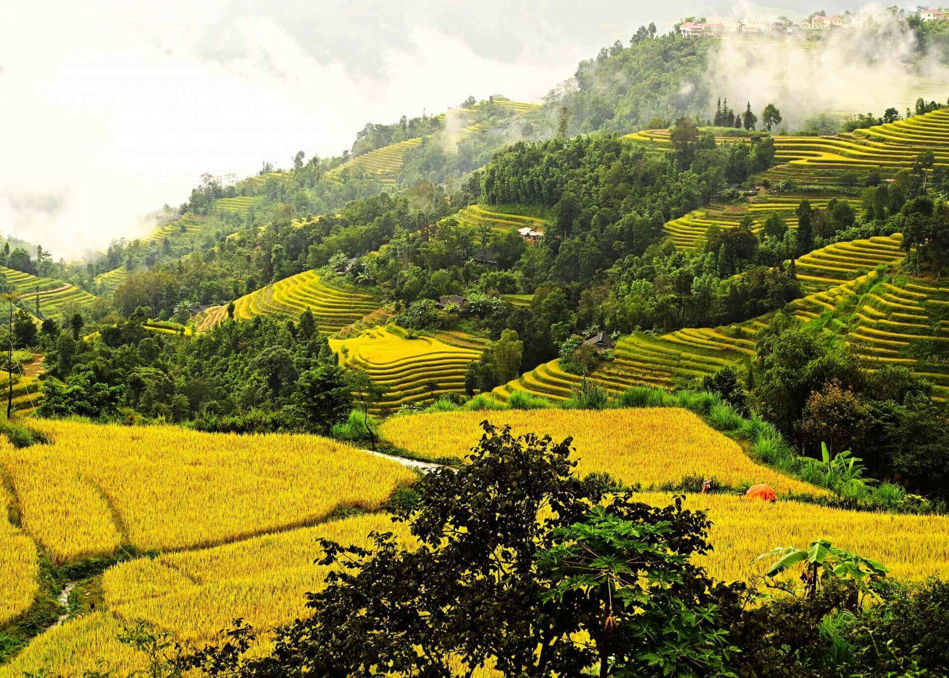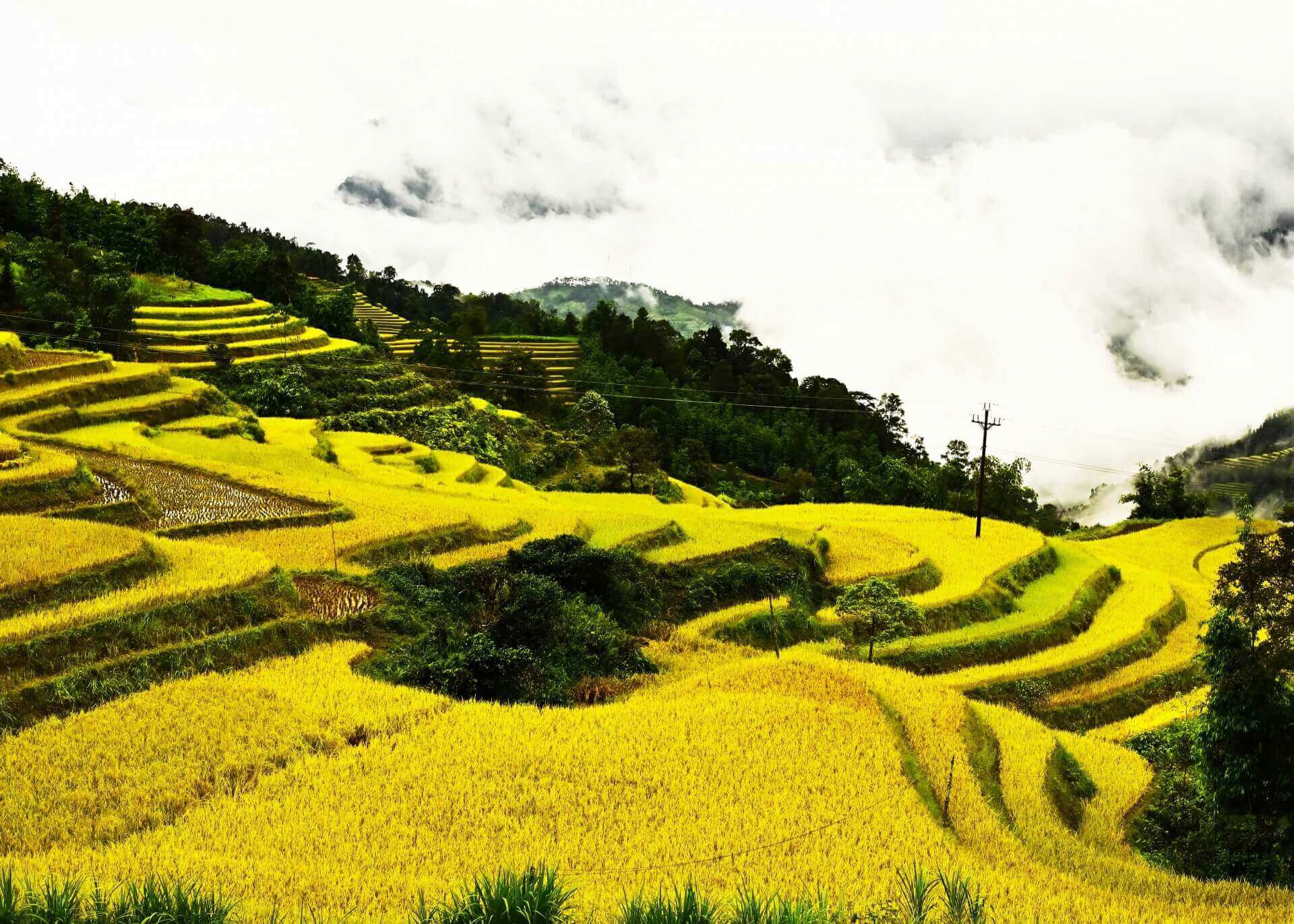 BHG - Trong tiết Thu tháng 8 âm lịch,trời đã mát dần,nắng vàng trải đều khắp các triền núi. Trên những thửa ruộng bậc thang lúa bắt đầu chín,nhuộm một màu vàng rực rỡ làm say đắm lòng người. Du khách trên mọi miền đất nước,du khách nước ngoài tấp nập đến với miền đất Vỏ cây vàng để được thả mình thưởng ngoạn cảnh đẹp của Di sản Ruộng bậc thang trong mùa lúa chín.
