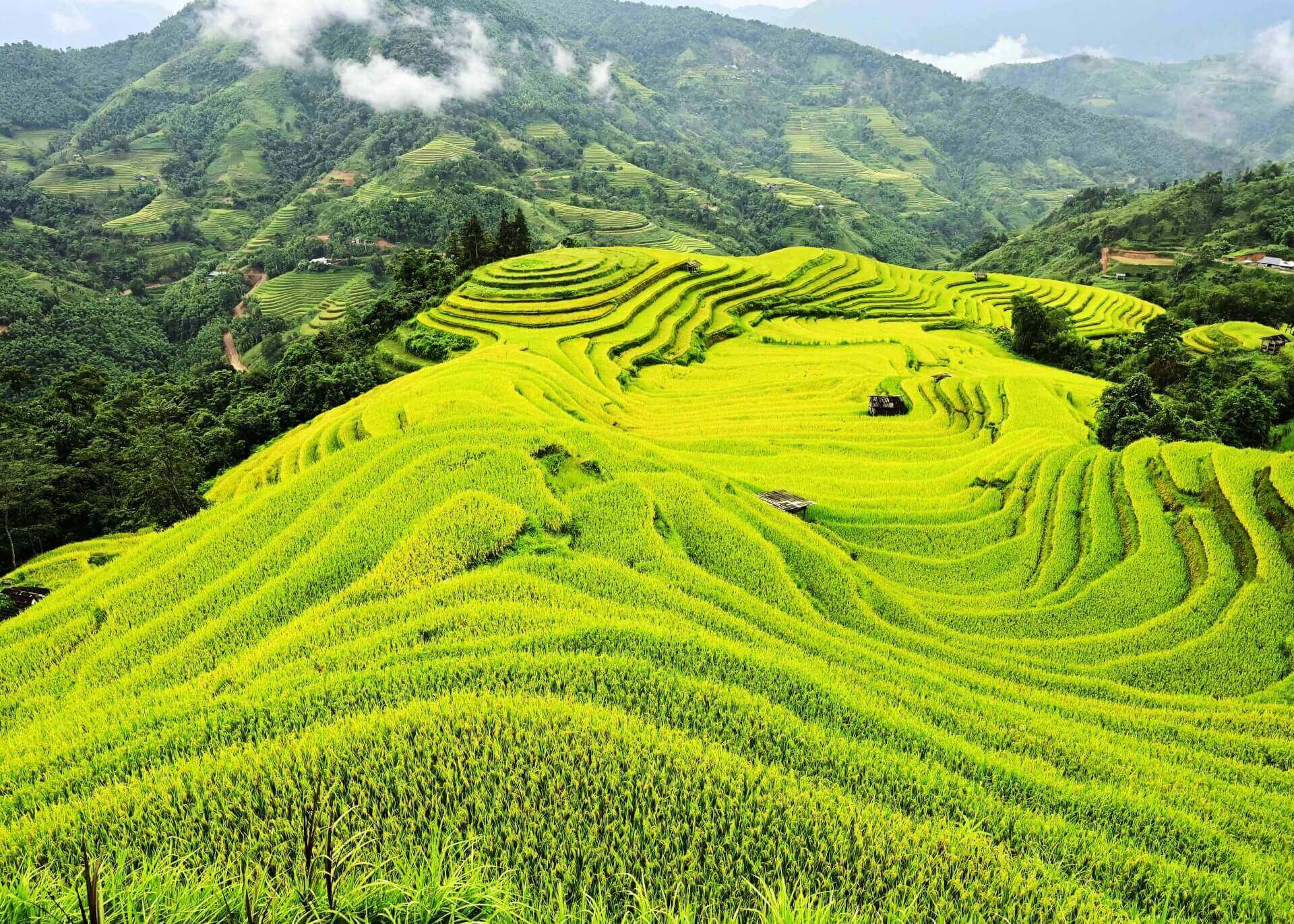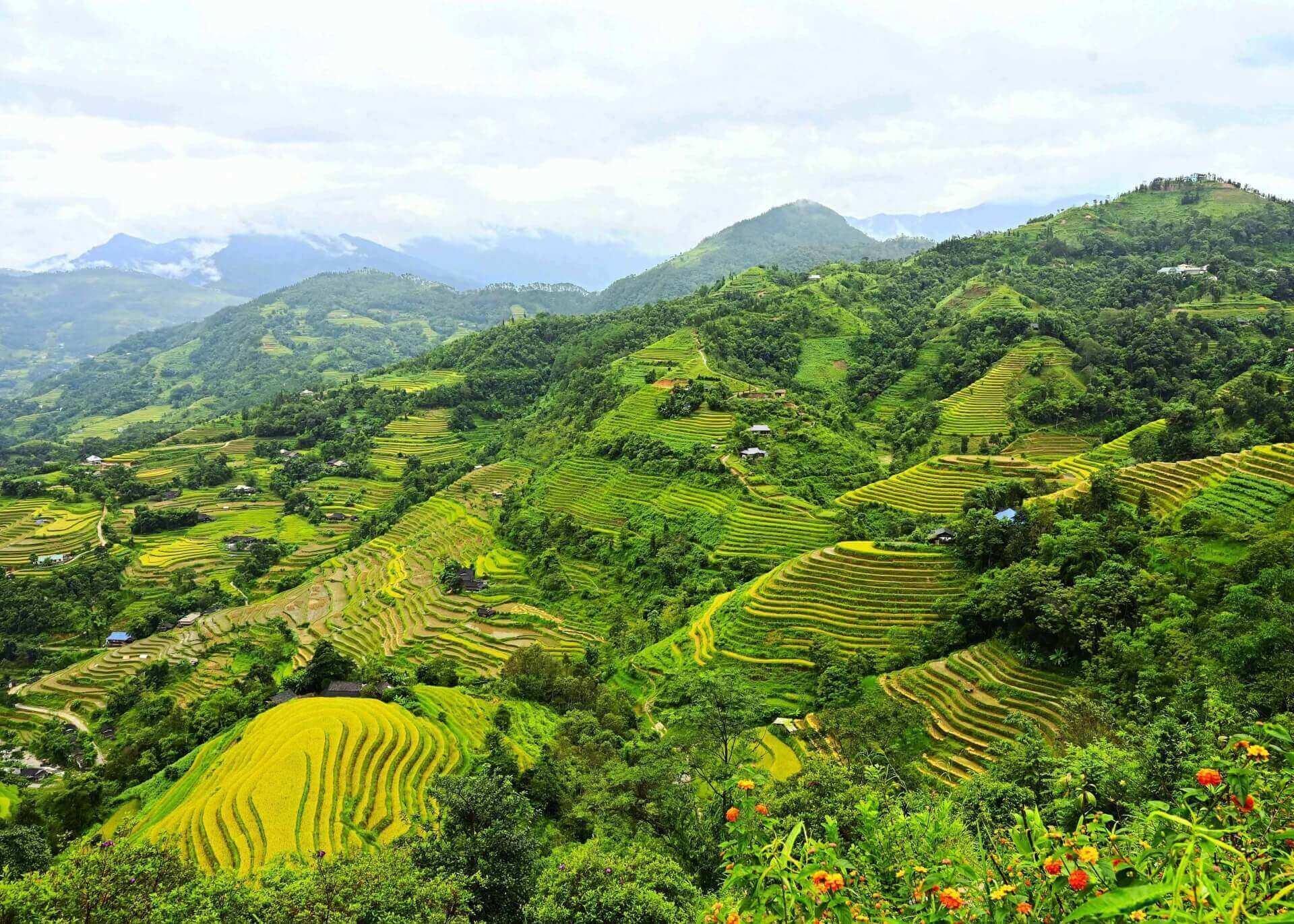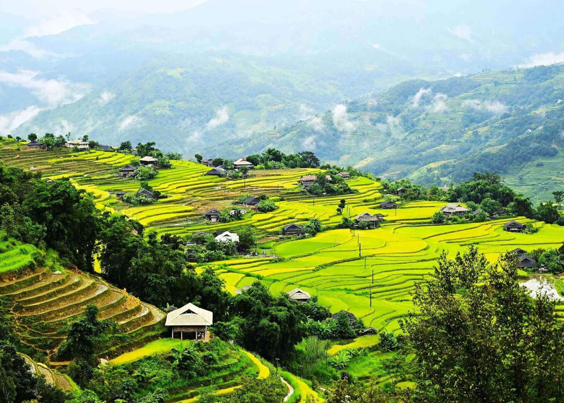 BHG - Trong tiết Thu tháng 8 âm lịch,trời đã mát dần,nắng vàng trải đều khắp các triền núi. Trên những thửa ruộng bậc thang lúa bắt đầu chín,nhuộm một màu vàng rực rỡ làm say đắm lòng người. Du khách trên mọi miền đất nước,du khách nước ngoài tấp nập đến với miền đất Vỏ cây vàng để được thả mình thưởng ngoạn cảnh đẹp của Di sản Ruộng bậc thang trong mùa lúa chín.