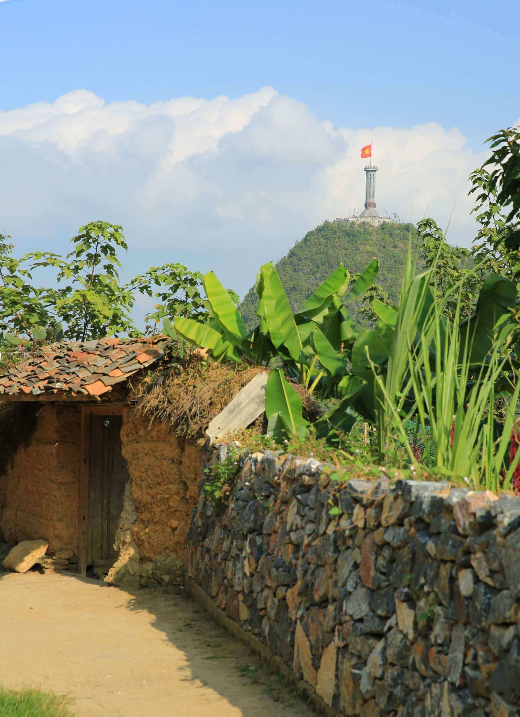 Là biểu tượng đánh dấu điểm cực Bắc của Việt Nam, cột cờ Lũng Cú được xây dựng trên đỉnh núi Rồng, thuộc một xã nhỏ ở huyện Đồng Văn, tỉnh Hà Giang. Nằm ở độ cao 1.470m so với mực nước biển, đây là một trong những địa điểm check in của nhiều bạn trẻ, đồng thời còn là điểm chinh phục của hầu hết tất cả các khách du lịch đến với Hà Giang. Để đến được cột cờ Lũng Cú bạn cũng cần phải sắp xếp đến Hà Giang du lịch, và cần phải có một lịch trình cụ thể, sớm nhất để tham quan nơi này vì cột cờ cách khá xa so với đoạn đường núi gần 200km. Nếu bạn muốn đến Hà Giang du lịch và ngắm nhìn được khung cảnh xinh đẹp nơi này thì một số thời điểm thích hợp nhất mà bạn nên cân nhắc chính là: Từ tháng 1 đến tháng 3: Vào khoảng thời gian này hoa mận, hoa đào, hoa cải vàng sẽ nở rộ, bạn sẽ chiêm ngưỡng được biệt danh “miền đá nở hoa” là như thế nào, nên đến đây vào thời gian này bạn sẽ được tham quan và tận hưởng những cảnh hoa đua nhau nở cực đẹp mắt. Bạn cũng có thể đến vào tháng 5 mùa nước đổ hay tháng 6 - 8 là khoảng mùa hè với thời tiết khô ráo, dễ dàng di chuyển và thuận lợi hơn trong việc tham quan cột cờ Lũng Cú. Hoặc bạn cũng có thể đến Hà Giang vào tháng 10 - 12 để tham quan cột cờ đồng thời đây là khoảng thời gian mùa hoa tam giác mạch nở trên cao nguyên đá Đồng Văn, bạn sẽ ngắm nhìn được những khung cảnh tuyệt vời nhất vào thời gian này. Điều đầu tiên khi bạn muốn đến tham quan cột cờ Lũng Cú Hà Giang là phải có một tấm vé máy bay đi Hà Nội. Sau khi đã đến Hà Nội rồi thì việc bạn cần làm sau đó là tìm cho mình một chiếc xe khách để đến thành phố Hà Giang của tỉnh Hà Giang, từ đây bạn cũng có thể thuê cả xe máy hoặc ô tô để lên đến Lũng Cú. Còn nếu bạn đang ở khu vực các tỉnh miền Bắc, bạn có thể lựa chọn đi xe khách, xe máy hoặc ô tô để đến cột cờ Lũng Cú theo đường quốc lộ 4C để đến Quản Bạ sau đó từ đây sẽ lên đến Đồng Văn. Nếu đã đến Đồng Văn rồi bạn chạy thẳng sẽ đến xã Sà Phìn, tiếp tục đi đến bạn sẽ gặp một ngã ba nếu đi thẳng bạn sẽ đến phố cổ Đồng Văn còn nếu ngược lại sẽ hướng về Lũng Cú. Được xây dựng trên đỉnh núi Rồng, nên để lên được đỉnh núi bạn cần trải qua 839 bậc thang, được chia làm 3 chặng, ở mỗi chặng sẽ có khu nhà chờ để du khách có thể nghỉ chân hoặc ngắm cảnh phía dưới núi. Sau khi leo hơn 800 bậc thang, bạn chắc chắn sẽ sững người đến tự hào khi chứng kiến cột cờ Lũng Cú với lối kiến trúc được xây dựng theo hình bát giác, có chiều cao 33.15m và lá cờ Tổ quốc 54m2 luôn tung bay trên đỉnh núi Rồng. Xung quanh thân cột cờ là hình mặt trống đồng Ðông Sơn và dưới chân cột cờ là tám tấm phù điêu minh họa cho các thời kỳ lịch sử vẻ vang của đất nước. Từ trên cột cờ nhìn xuống, bạn sẽ có cảm giác như được ngắm nhìn bờ cõi nước Nam ta trong tầm mắt. Được cảm nhận được không khí se lạnh của núi rừng Đông Bắc. Đứng ở núi Rồng, cảm giác như núi rừng Đông Bắc hòa cùng mây trời cao rộng, không những vậy, chỉ cần ngước mắt nhìn lên là hình ảnh tự hào dân tộc lại càng nâng cao lên với màu sáng tươi của lá quốc kỳ thiêng liêng tung bay. Vừa tạo cảm giác tự hào vừa lại hưng phấn khi chinh phục được đỉnh cao của một cột mốc lớn.