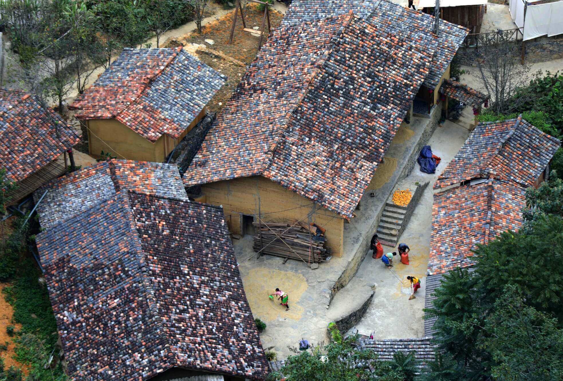 Làng Thèn Pả các ngôi nhà đều là nhà trình tường (tường đất),lợp mái ngói âm dương.