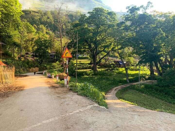 Được bao quanh bởi những ngọn núi hùng vĩ và cây cổ thụ hàng trăm tuổi,ngôi làng yên bình nằm trong không gian tĩnh lặng. Bước qua khu vườn ngập những bóng cây cổ thụ,nếp nhà trình tường mang sắc vàng ấm áp cùng mái ngói cũng dần xuất hiện.