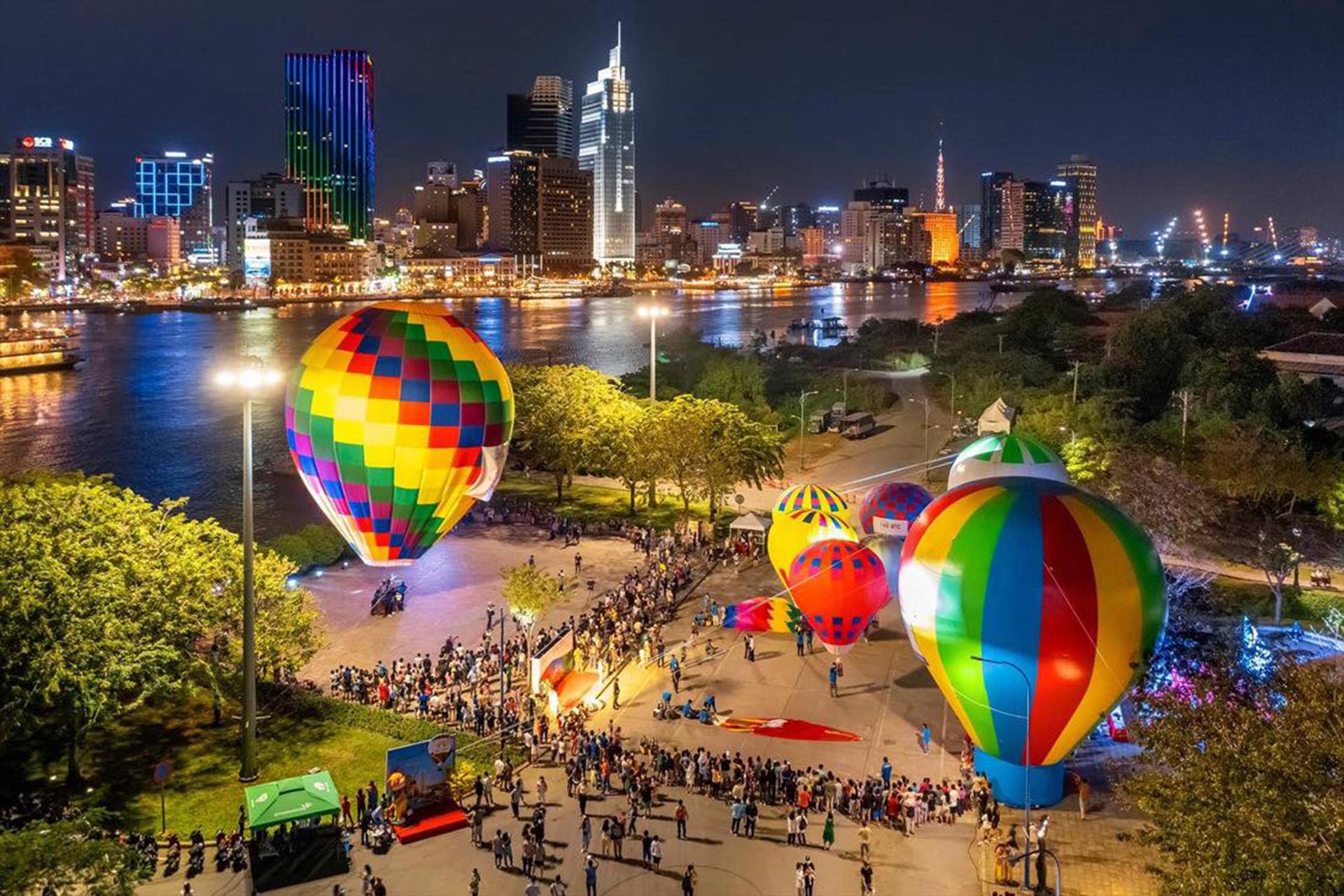 Ngày hội khinh khí cầu Tp. Hồ Chí Minh lần 2 được diễn ra tại Công viên cầu Thủ Thiêm 2 (Tp. Thủ Đức). Ảnh: Giang Sơn Đông